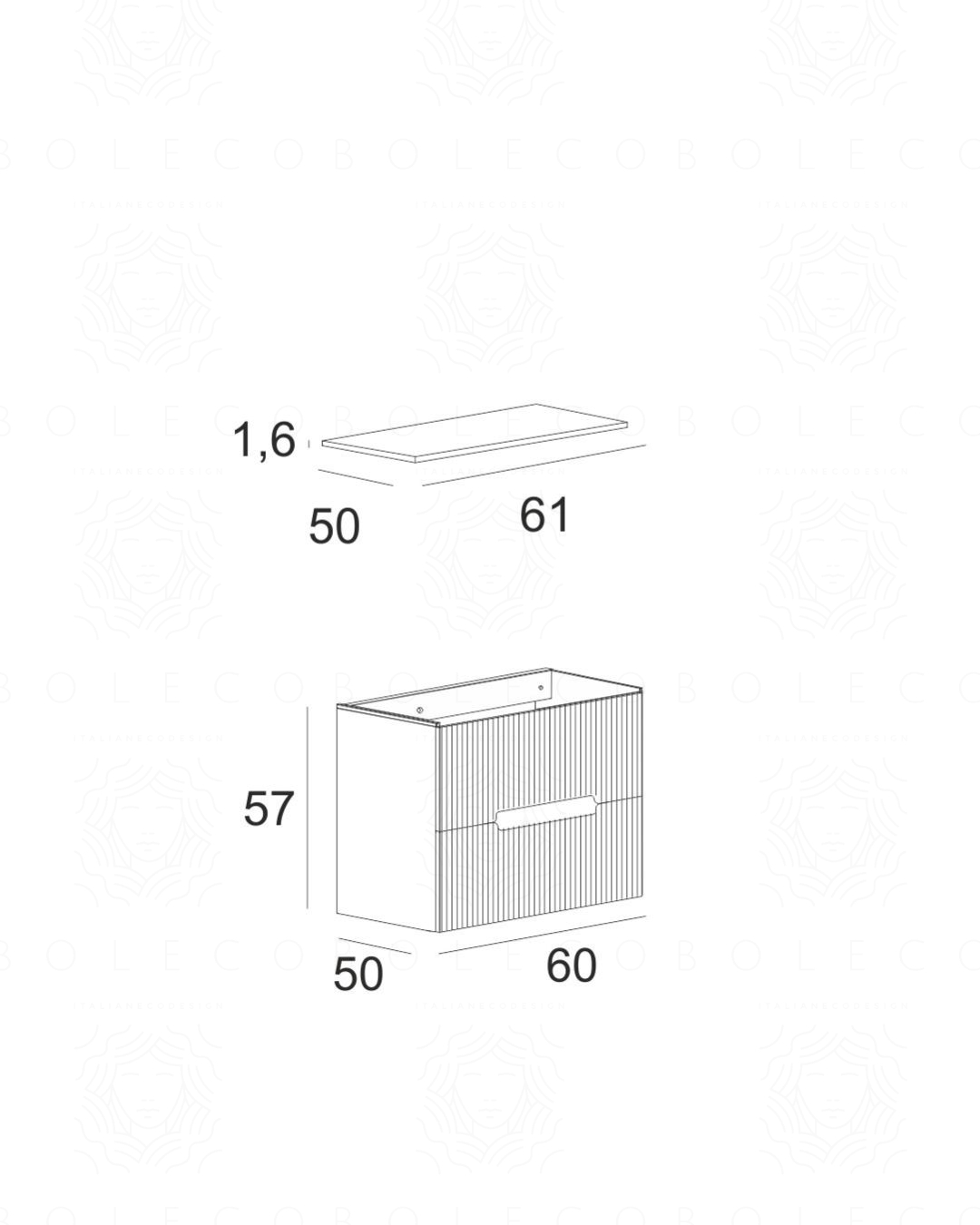 Mobile bagno cm 60 e profondo 50 cm. Due cassetti cannettati soft close e top da appoggio in mdf. Lavabo da appoggio, specchio e pensile Non inclusi