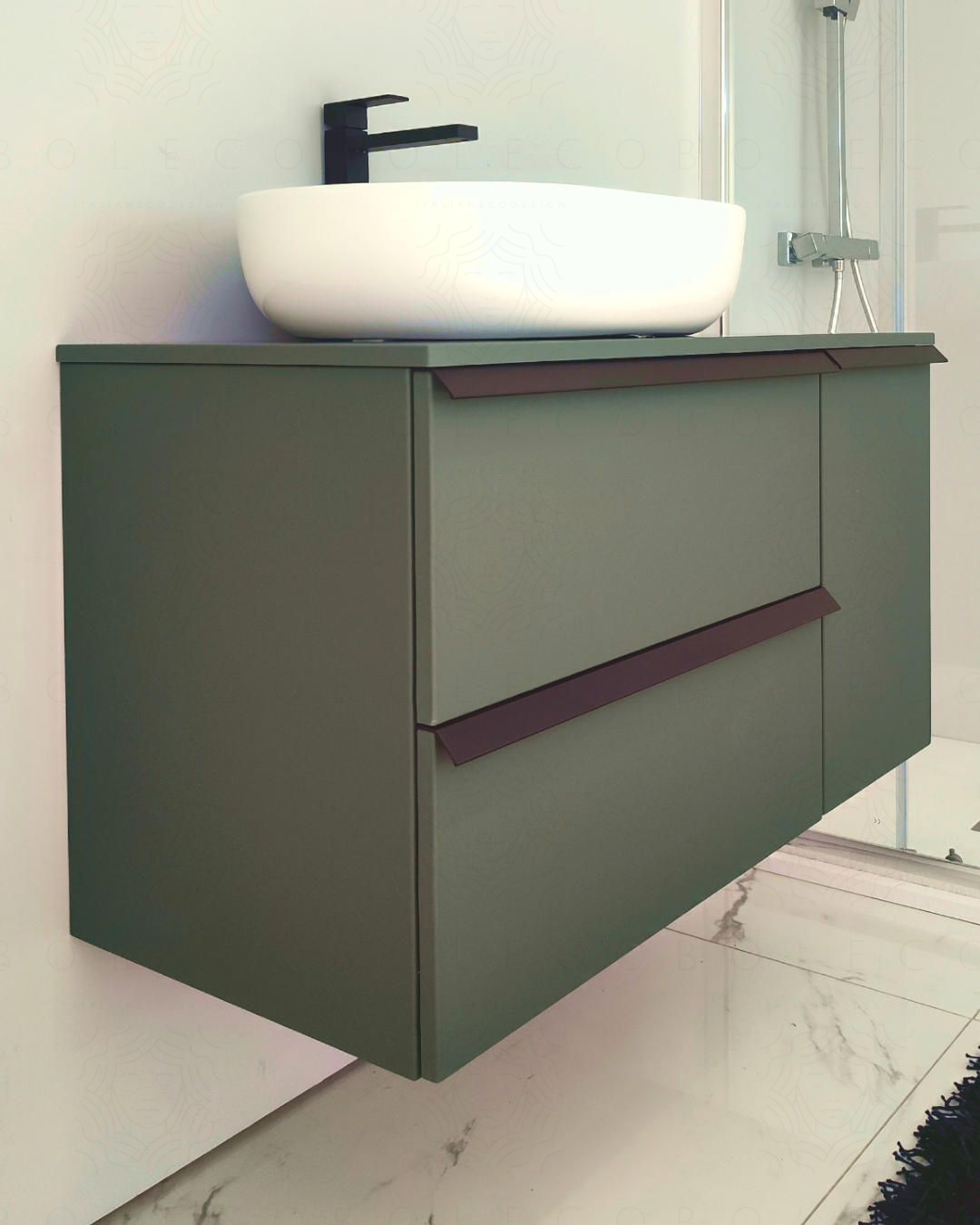 Mobile bagno sospeso Laguna cm 106 verde opaco e top da appoggio
